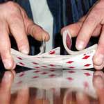 A player picks a card, and places a bet (Ace of diamonds, let’s say), which goes back into the deck. The dealer starts revealing the cards – alternating between a single card dealt from the ’inside’ (bottom), and another from the ‘outside’ (top) until the (Ace of diamonds) is dealt.