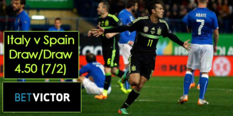 The best Italy v Spain odds: draw/draw for 4.50 (7/2) at BetVictor