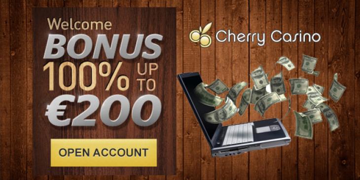 Create your new account at Cherry Casino and enjoy the incredible 100% first deposit bonus up to EUR 200! Please note that this outstanding offer is only available to newly registered customers of the popular online gambling destination. The minimum deposit in order to activate the promotion is EUR 20.