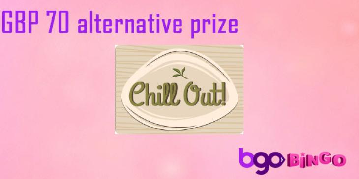 bgo Bingo figures you may need a break and some well deserved relaxation. Spoil yourself as bgo Bingo has just the game to pep you up. To play the Chill Out game all you have to do is click on the Prize Bingo tab online and pre-buy your GBP 0.05 tickets. If you win, you can get pampered using the Spa gift voucher for two. But bgo Bingo can give you a cash GBP 70 instead if you wish. See? No stress!