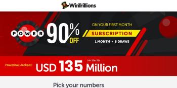 18+. New players only. 90% discount. Monthly subscription. US Powerball tickets. Terms and Conditions apply.